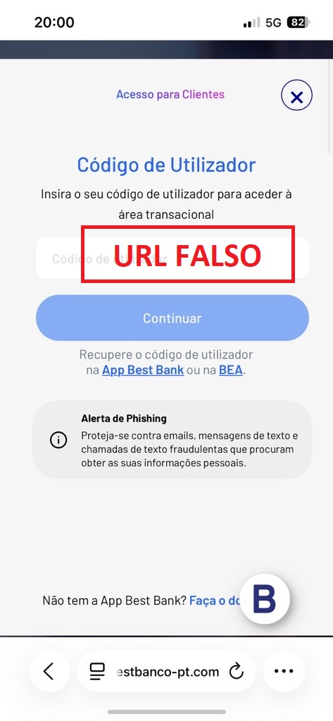 através de motores de busca, mas sim digitando o URL do Banco: www.bancobest.pt.