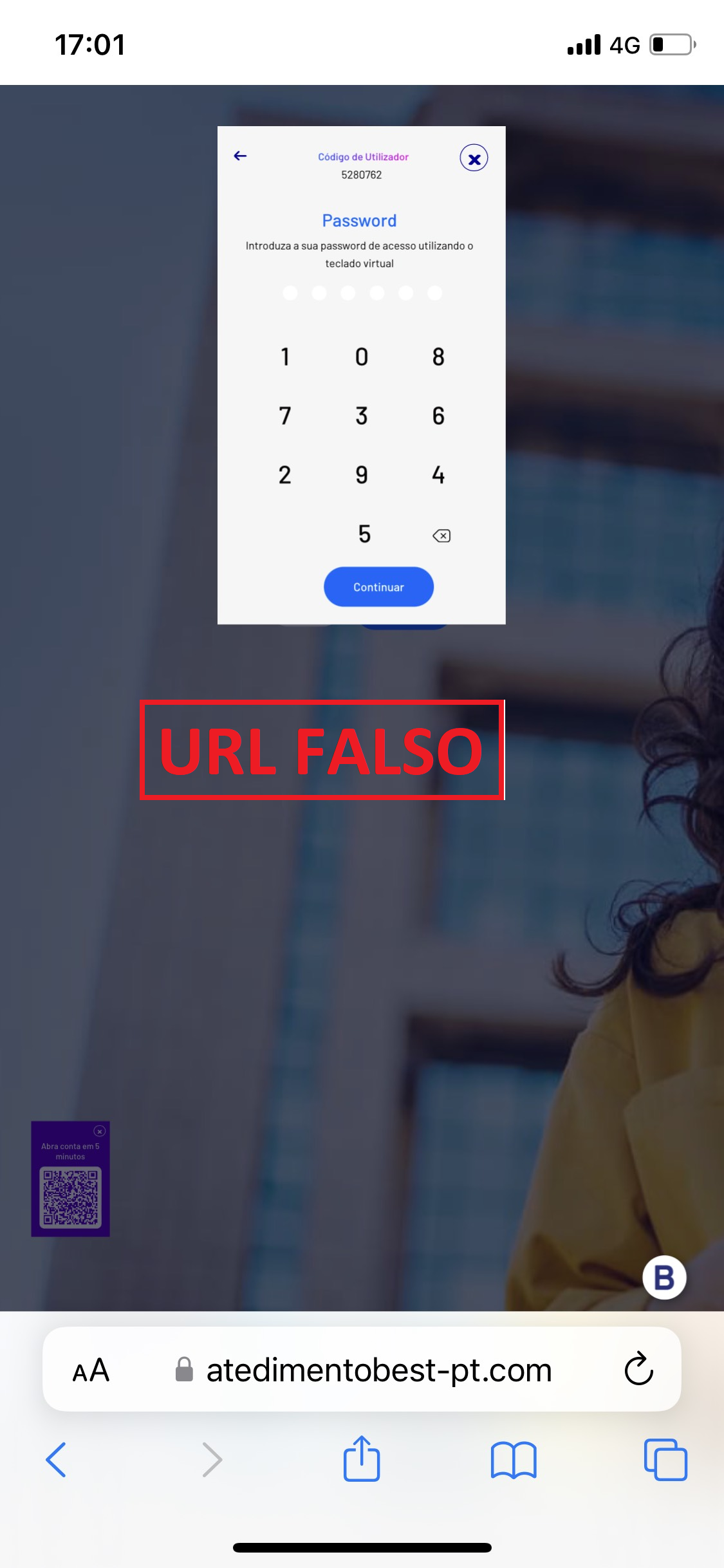 iniciado, não insira/ partilhe em circunstância alguma o código que tenha recebido.